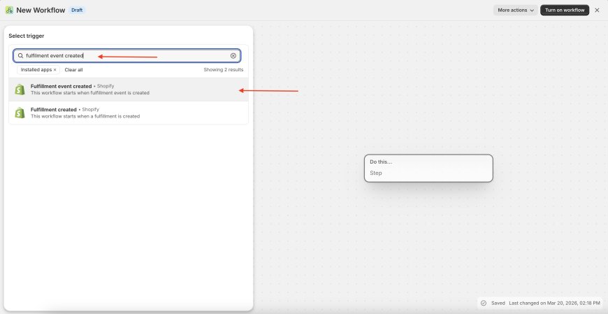 There search for "fulfilment event created" and select that event from the search result you get as shown in the screenshot given below,